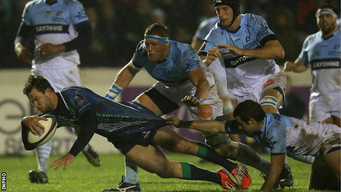The new signing from Waikato notched his first five pointer after a disorganised visiting back three let a high ball bounce in their own half and the Kiwi flyer snapped it up and sprinted home for a popular score. The 24 year-old had 10 tries in 21 Super rugby appearances over the last two seasons so notching scores is a key part of his game and getting the first out fo the way augurs well for the westerners.